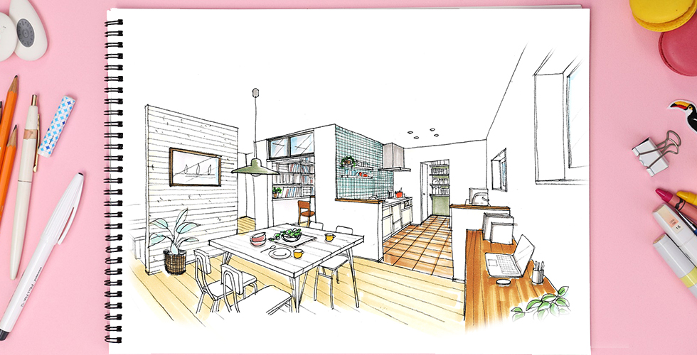 お客様の興味を引くような印象に残るようなパースを描けるよう、日々鍛錬です!!